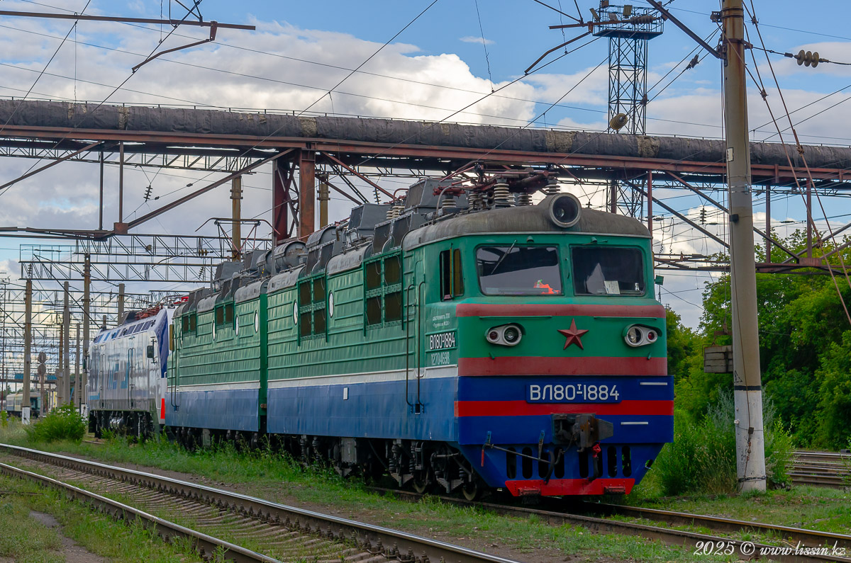 ВЛ80Т-1884 и CEA1F1-0001 на станции Павлодар, Павлодарская область, 12.07.25г.