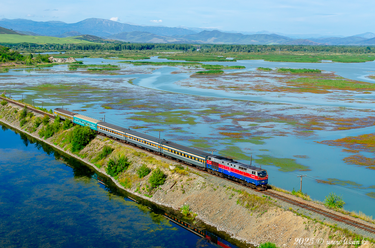 ТЭ33А-0248 с пригородным поездом №642 Алтай (Зыряновск) — Оскемен-1 (Защита) на перегоне Тургусун — Заводинка, ВКО, 06.08.2025г.